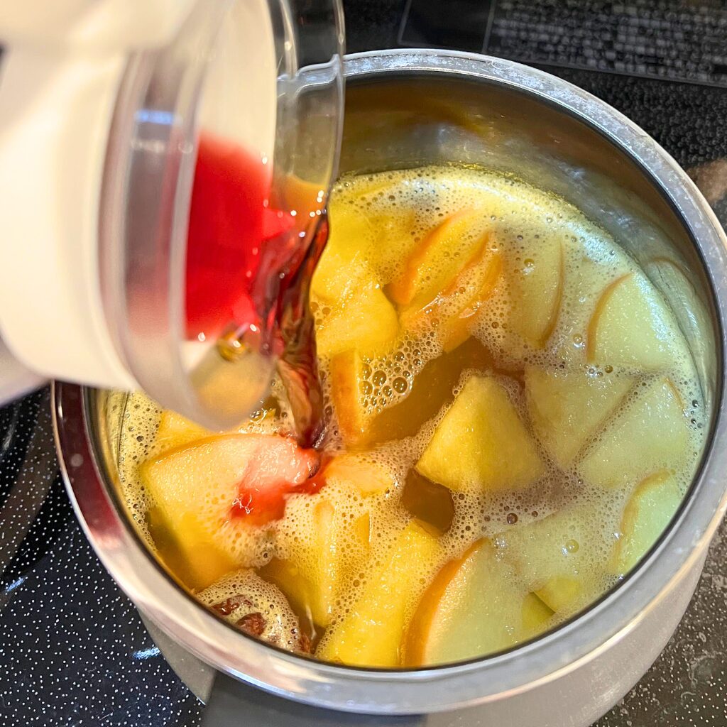 和紅茶とワイン(ノンアルコール)を使ったオリジナルティードリンクの試飲をご提供しました。 フルーツとスパイスを煮出してつくるグリューワインティーは、和紅茶を合わせると香りがふわっと立ち、冬のティータイムにぴったり。今回は茶葉の産地である埼玉県秩父の名産品「ゴールデンカボス」のほのかな酸味をアクセントに仕上げました。 カスタムティーでは、季節やコンセプトに合わせたオリジナルドリンクの開発・レシピ提案も承っています。