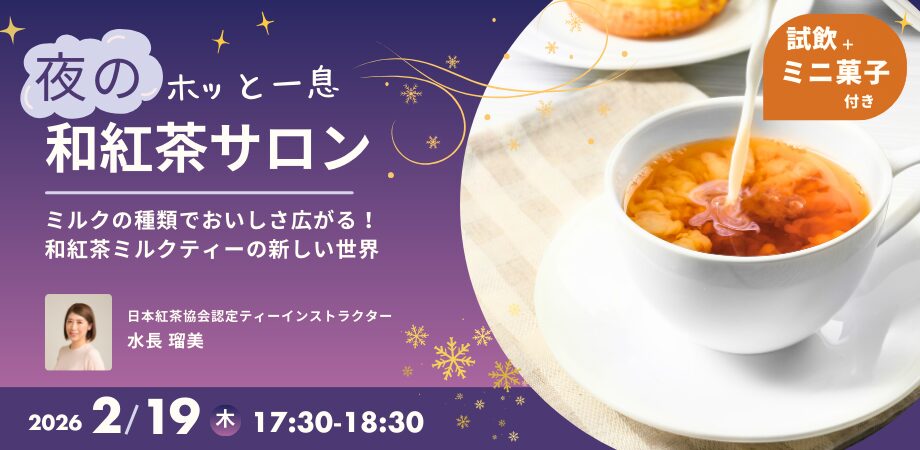 講座名:夜の和紅茶サロン -ミルクの種類でおいしさ広がる!和紅茶ミルクティーの新しい世界-